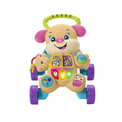 Αυτό το Ροζ Σκυλάκι θα διασκεδάζει το μωρό σας καθώς μεγαλώνει, όταν θα παίζει καθιστό με τα παιχνίδια του ή όταν θα περπατάει γύρω γύρω. Με διασκεδαστικές δραστηριότητες για τα μικρότερα μωρά και με 75 τραγουδάκια, ήχους, μελωδίες και φράσεις που θα ενθαρρύνουν τα μεγαλύτερα μωρά να περπατήσουν, επιβραβεύοντας κάθε βήμα τους! Χάρη στην τεχνολογία Smart Stages, μπορείτε να επιλέξετε το επίπεδο μάθησης που ταιριάζει καλύτερα στο μωρό σας. Κάθε επίπεδο έχει διαφορετικά τραγουδάκια, ήχους, μελωδίες και φράσεις, ώστε το εκπαιδευτικό παιχνίδι να αλλάζει καθώς μεγαλώνει το μωρό. Επίπεδο 1 – Εξερεύνηση (6 μηνών +): Επτά δραστηριότητες, όπως ένα βιβλιαράκι για να γυρίζει τη σελίδα και πλήκτρα για να πατάει, κρατάνε το μωρό απασχολημένο, παρουσιάζοντάς του χρώματα, σχήματα και αριθμούς! Επίπεδο 2 - Συμμετοχή (12 μηνών +): Σε αυτό το στάδιο, το μικρό σας θα ακούει το Σκυλάκι να του ζητάει να βρει διαφορετικά σχήματα και θα του μαθαίνει τις πρώτες του λεξούλες στα αγγλικά! Επίπεδο 3 – Μίμηση (18 μηνών +): Καθώς το μωρό σας θα γυρίζει τις σελίδες του βιβλίου, θα ακούει διασκεδαστικές φράσεις και ένα τραγουδάκι που θα "ζωντανεύει" τις εικόνες!